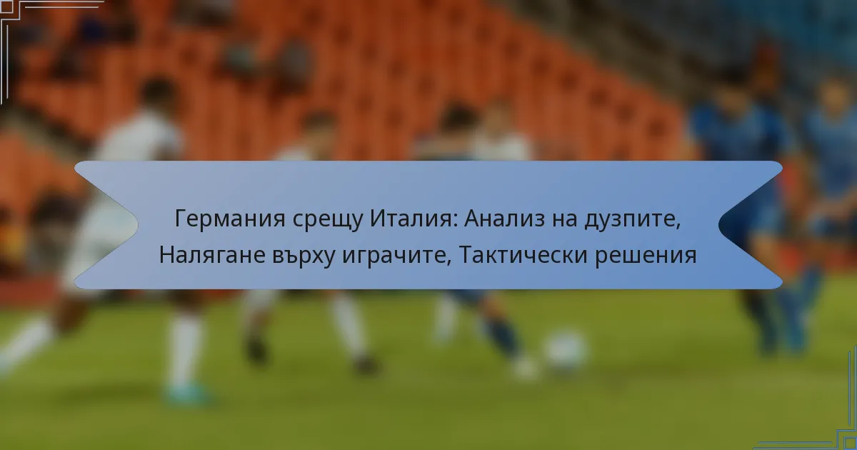 Треньорите на двата отбора са взели значителни тактически решения, които влияят на динамиката на мача. Треньорът на Италия често избира компактна формация, приоритизираща защитната стабилност и бързите контраатаки. Този подход е доказал своята ефективност срещу отбори, които разчитат на притежание.